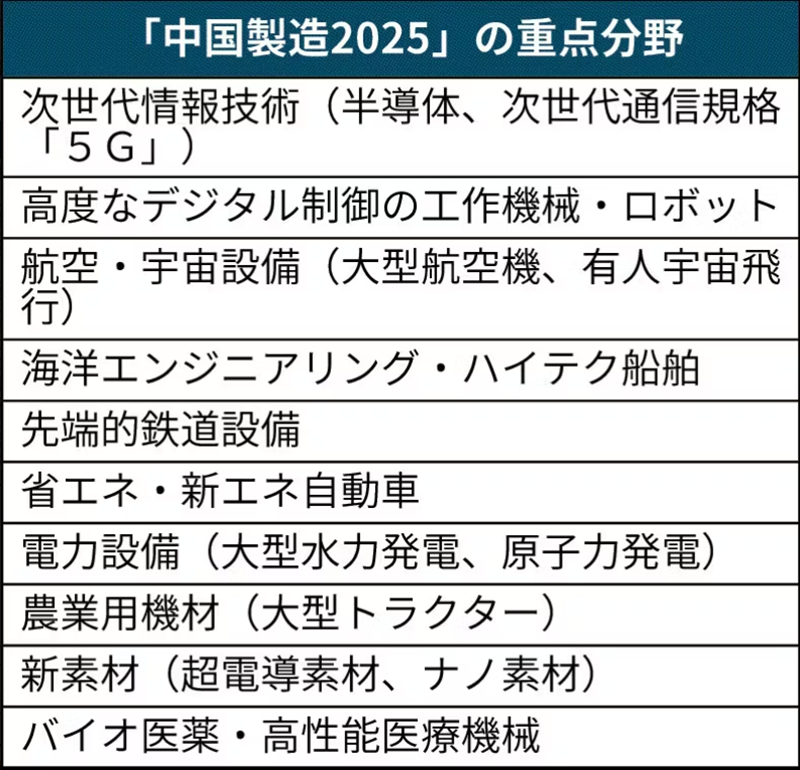 引用:日本経済新聞「中国製造2025とは 重点10分野と23品目に力」