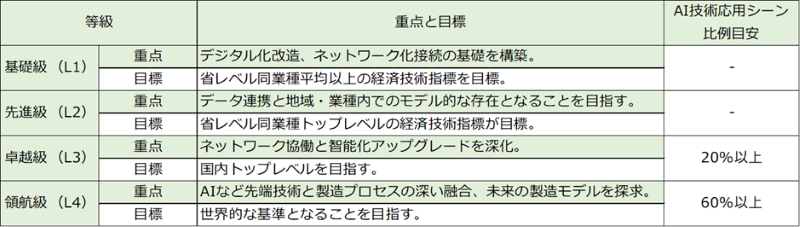 2025年6月、工業情報化部など6省庁が共同で「2025年度スマート工場の段階育成行動に関する通知」を発表。この政策では、スマート工場を4つの等級に分け、企業の現状に応じた段階的な育成とアップグレードを推進しています。