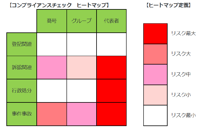 ・照合情報:4項目(登記関連、訴訟関連、行政処分、事件事故)