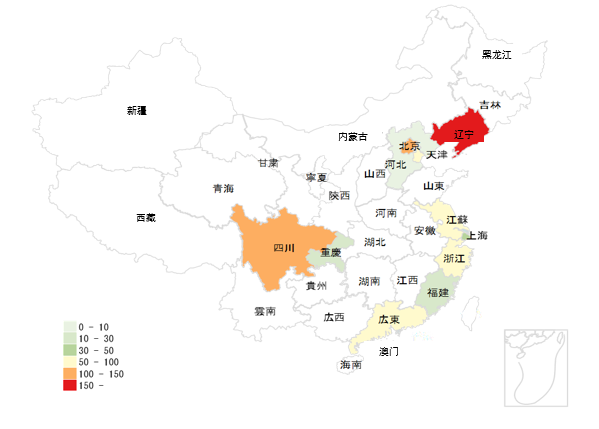 | 1 | 辽宁省 | 162 | 18.7% |
