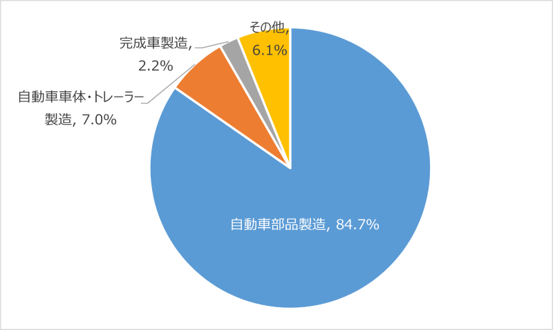 「自動車製造業」企業を細分類業種別 に集計すると(図1)、「自動車部品製造」(社数653社、84.6%)が圧倒的多数を占め、「自動車車体・トレーラー製造」(同55社、7.1%)が続き、自動車製造業企業の9割以上をこの2業種が占めた。「自動車部品製造」は前回調査(506社、61.3%※1)から大幅に増加しており、企業の集約化が一段と進んだことが分かる。一方、「自動車車体・トレーラー製造」は前回調査(209社、25.3%※1)から大幅に減少している。