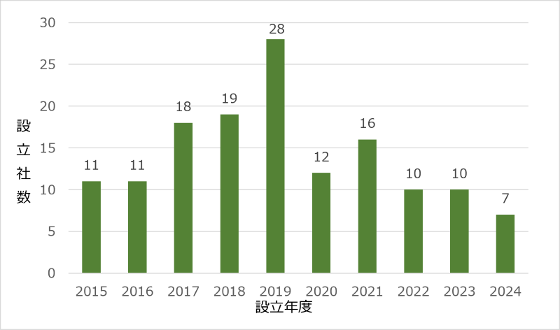 過去10年間の設立推移を見ると(図3)、新設企業は2019年に28社でピークを迎えた後、減少傾向に転じ、2024年には過去最低水準の7社となった。日系企業は新規投資を抑制している傾向が再び読み取れる。