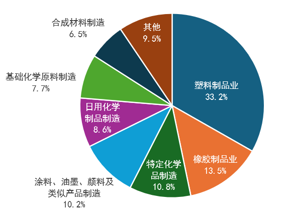 将”化学工业”企业按细分行业统计(图1),”塑料制品业”(327家,33.2%)和”橡胶制品业”(133家,13.5%)合计约占整体的一半,日系化学工业的基础领域地位未发生变化。