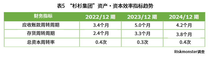 “存货周转期”是指原材料及产品作为库存保有期间的指标。库存滞留期原则上越短越好,但过度削减库存又会导致缺货、错失收益机会,因此符合业态的适当库存期间尤为重要。此外,若期间呈现长期化,除可能产生过剩库存外,还需警惕因不良库存或虚构库存入账而导致的财务粉饰风险。《Rismon行业审查报告中国2024年版》显示,机械工业的存货周转期行业平均为3.1个月,而杉杉集团从2022年12月期(2.4个月)至2024年12月期(3.8个月)持续延长,已超过行业平均水平,库存可能成为资金周转的压迫因素。