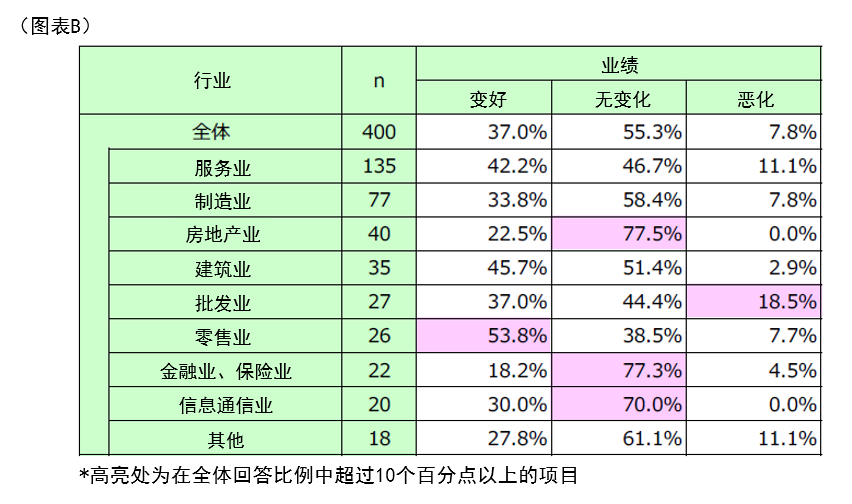 另一方面,也有行业如“批发业”,因世博举办而出现较多业绩“恶化”的企业,可见世博会不仅带来红利,也让部分行业承受了负面影响。(图表B)